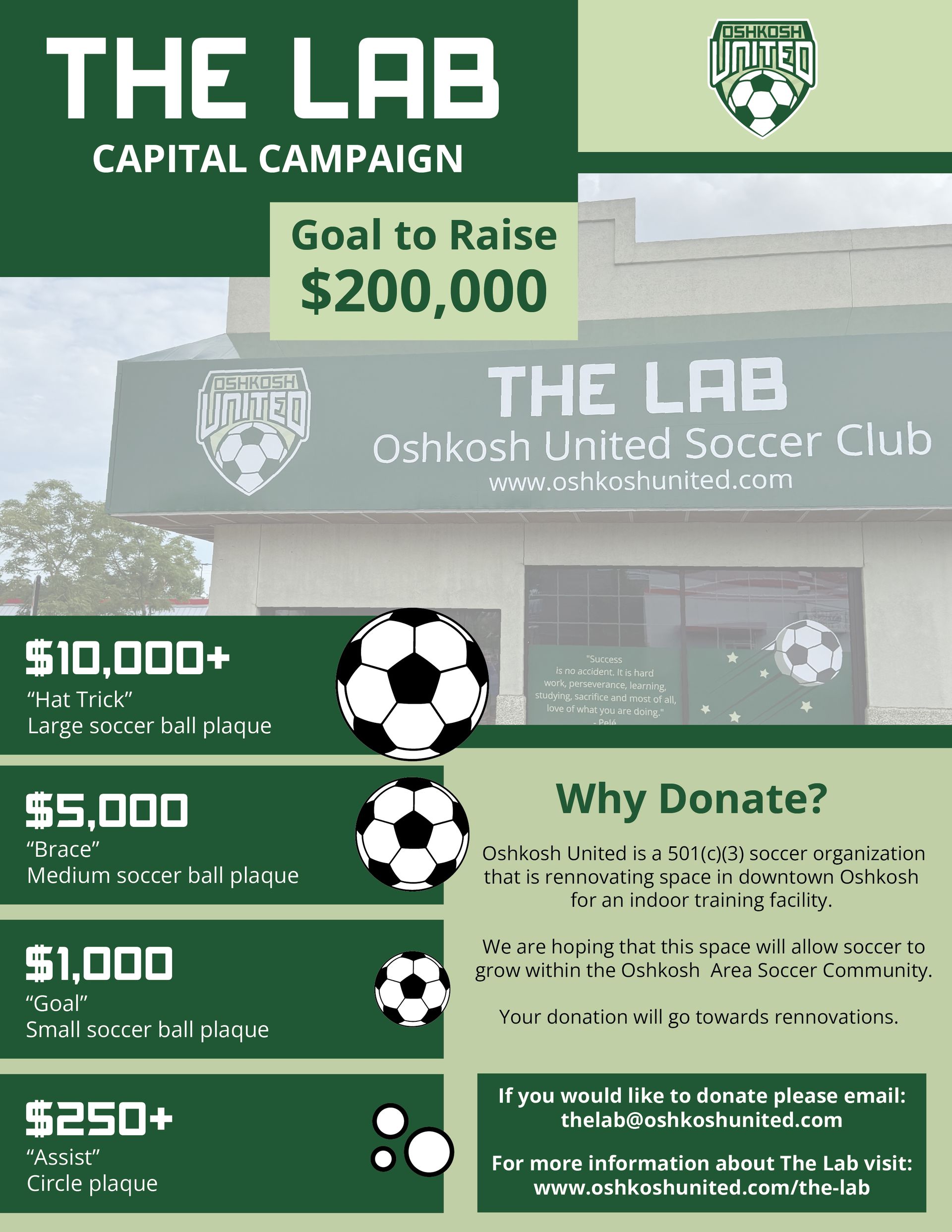 Oshkosh United Soccer Club Announces New Indoor Training Facility, 'The Lab,' in Downtown Oshkosh